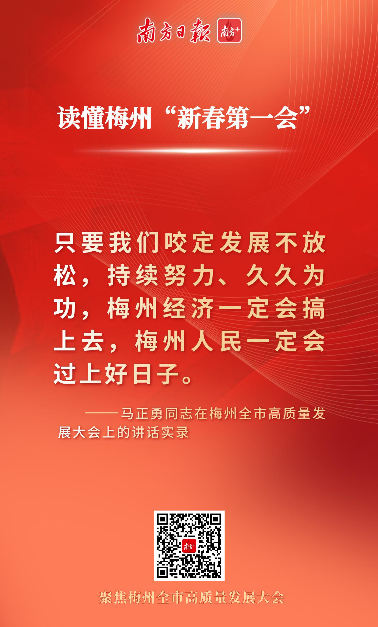 會上,梅州市委書記馬正勇作發言,動員全市上下堅定信心,鉚足幹勁,實幹大幹,推動梅州高質量發展不斷取得新突破。一句句關鍵話語,似號角聲聲,催人奮進。