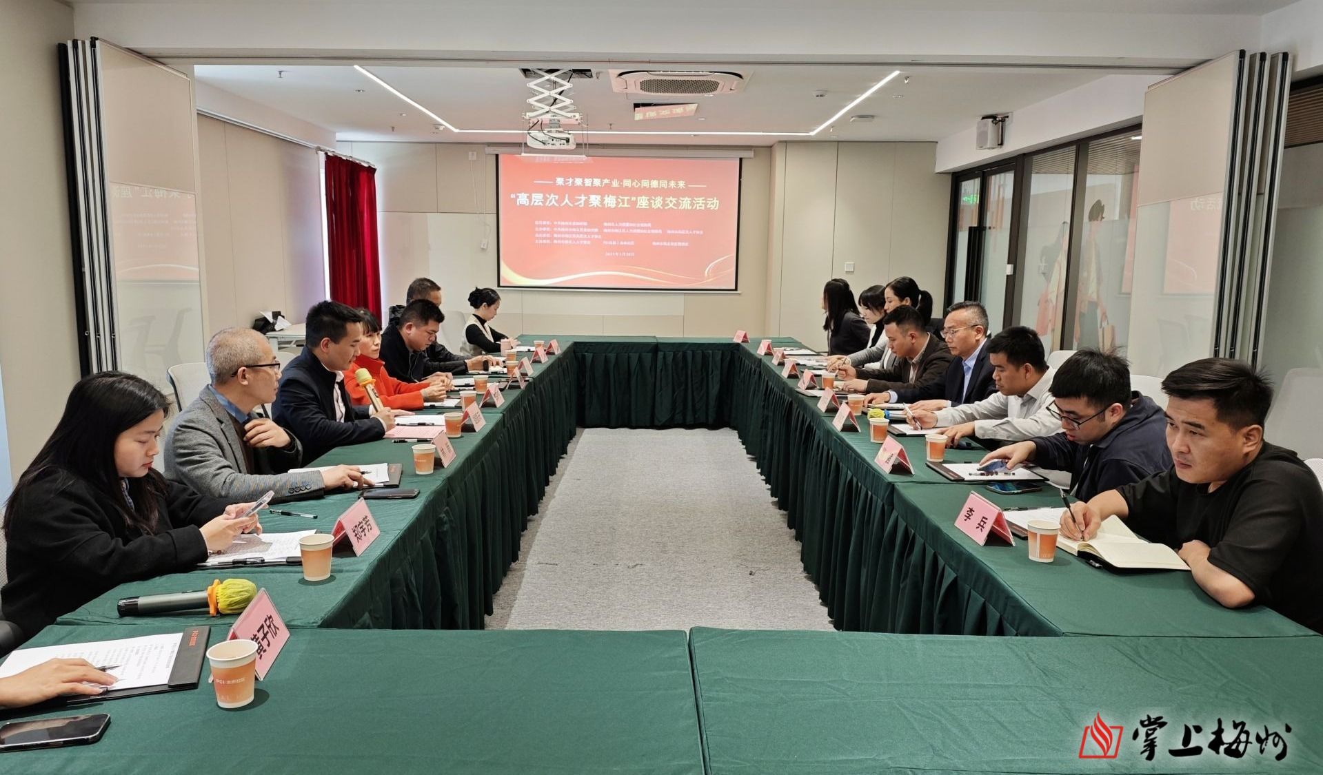 活動現場,梅江區人社局黨組成員陳莉冬傳達了“百萬英才彙南粵行動計劃”和“免費梅州”政策等相關內容。來自不同領域和行業的人才,圍繞人才服務現代化產業體係建設主題進行座談交流,為梅州人才工作建言獻策,形成濃厚氛圍。