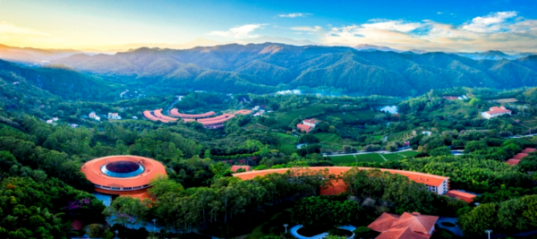 雁南飛,茶中情。雁南飛茶田風景區位於梅縣區雁洋鎮長教村陰那山麓,是梅州目前唯一的一個5A級景區。這裏群山環抱,茶田疊翠、果園碧綠、百花盛開。“雁南飛”詮釋客家人根自中原,北雁南飛;“茶”則是景區的主題文化,茶情閣茶香四溢,茶美食回味無窮。茶田裏,茶農們一邊勞作一邊對歌,是一道亮麗的風景線;景區內,根據客家民居風格建造而成的圍龍酒店和圍龍食府組合成一個完美的如玉造型,蔚為壯觀。