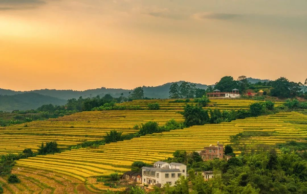 抑或是秋收時節,稻浪滾滾的金色梯田——