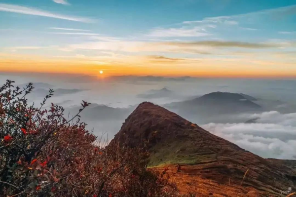 銅鼓峰因頂端方圓形如銅鼓而得名山上風光變幻莫測,日出和雲海堪稱兩絕。當朝陽的光芒灑滿大地時,站在峰巔看旭日東升、雲海湧動,非常震撼。