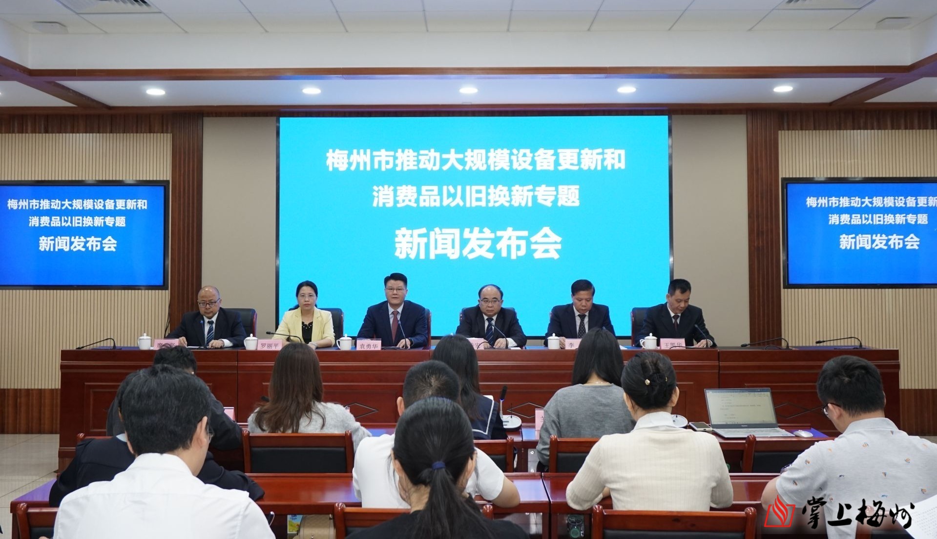 11月8日上午,梅州市推動大規模設備更新和消費品以舊換新專題新聞發布會在梅城召開。市發展改革局、市工業和信息化局、市交通運輸局、市住房城鄉建設局、市商務局相關負責同誌出席新聞發布會,介紹我市推動大規模設備更新和加力支持消費品以舊換新(以下簡稱“兩新”)工作有關情況,並回答記者提問。