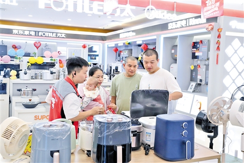市民到京東家電家居梅州專賣店選購家電。(高訊 攝)