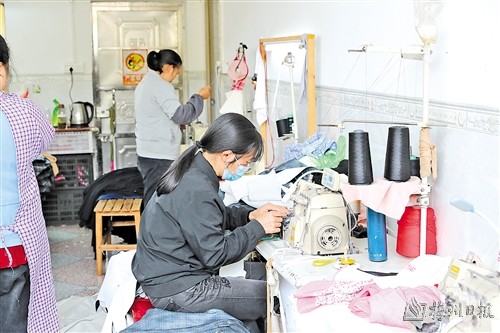 湖中村製衣車間方便群眾就近就業增收。(賴鋒 攝)