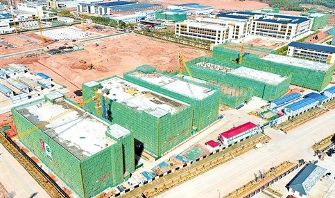 梅州平遠高新區標準廠房建設施工現場。(圖片來源:梅州日報 袁誌鵬 攝)