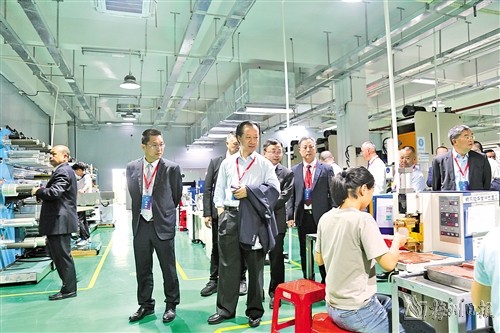 與會領導嘉賓參觀梅州市鴻富瀚科技有限公司生產車間。