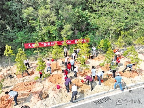 與會領導嘉賓揮鍬鏟土種下一批“客商林”“僑心林”,助力綠美大埔建設。