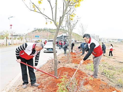 “縣鎮村綠化,需要全社會共同參與。經過廣泛宣傳發動,白渡鎮已形成了黨員幹部帶頭、社會各界支持、人民群眾參與愛綠、植綠、護綠的良好氛圍。”白渡鎮綠化專班有關負責人李淩雲告訴記者,春節前該鎮已有8個行政村開展了義務植樹活動,栽下櫻花、串錢柳、紫荊花、桃樹、鳳凰木等1300多株樹木。