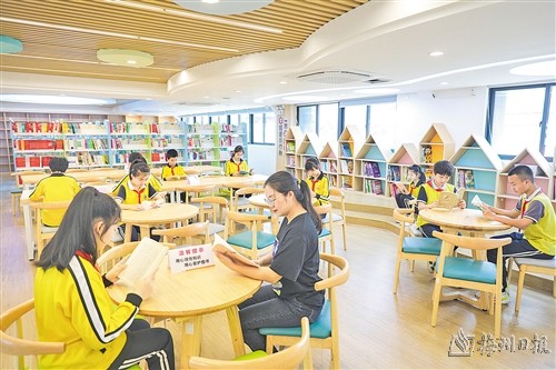 記者在智慧圖書館看到,書架上放滿了各類圖書,學生們或手捧圖書獨自靜靜品讀,或三兩好友邊讀邊交流,盡情徜徉於知識的海洋。“現在課餘時間我們就能到圖書館挑選自己喜歡的書看,真方便!”該校六年級學生呂泓德告訴記者,良好的氛圍激發了他的閱讀興趣。