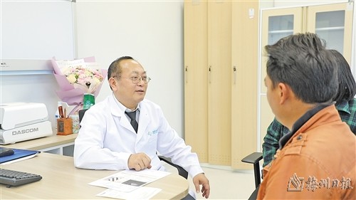 梅州穀城醫院院長、嶺南名醫李剛正在接診患者。(梅州穀城醫院供圖)