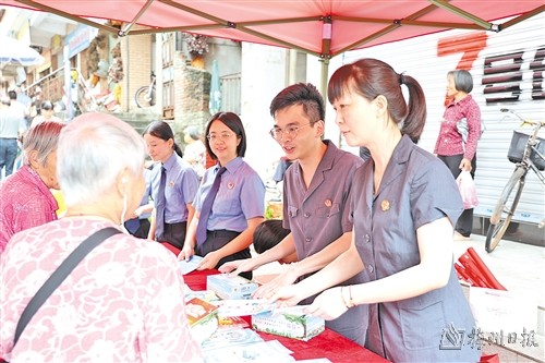 大埔法院在湖寮鎮虎山市場開展圩日普法活動。