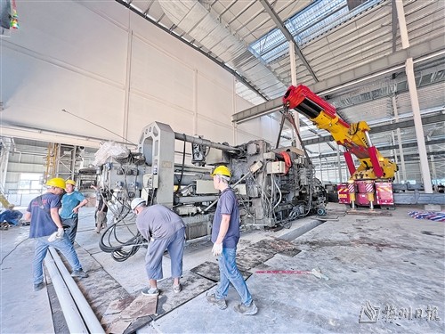 威富智慧創新園項目是豐順縣2023年重點招商引資項目,建成後年產值預計達10億元。當前,該項目建設熱火朝天,在3號廠房內,工人們正緊張進行設備調試。截至目前,項目總建設進度超過80%。“我們6月26日開始進廠安裝機台,隨後進行設備調試。”威富智慧創新園項目生產經理周鐵中告訴記者,設備調試完成後,很快就可以實現投產。