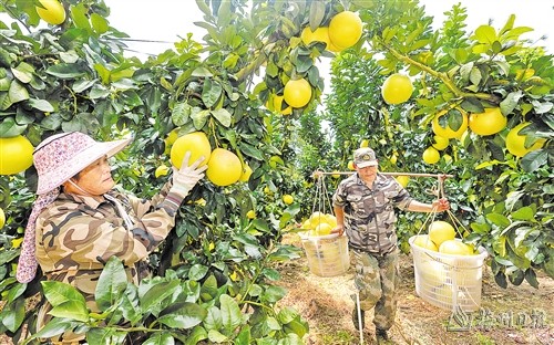 梅州杉富綠色生態農業發展有限公司蜜柚種植基地柚果豐收。