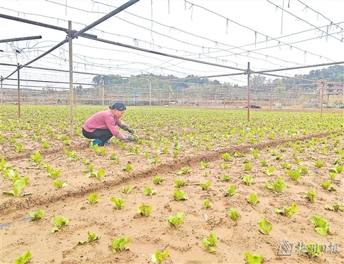在轉水鎮五星村,梅州市延豐農業科技有限公司組織員工搶抓當前有利時機,有序分工在田間地頭、溫室大棚進行犁地、下秧、種菜等作業,為種植基地全年增產增收開好局起好步。走進該公司蔬菜種植基地,隻見溫室大棚內春意盎然、生機勃勃,工人們正精心培育各類蔬菜苗,為今年蔬菜產業發展作準備。田地裏,工人們有的整地、拉膜,有的忙著起壟、種菜、除草,各項工作井然有序。“基地麵積有300多畝,產品主要供往學校及周邊批發市場,擁有較全的蔬菜品類和較大的產量。”該基地負責人唐永貴介紹說,基地在發展的同時,也有力有效帶動周邊村民就業,目前基地平均每天需要用工40多人。