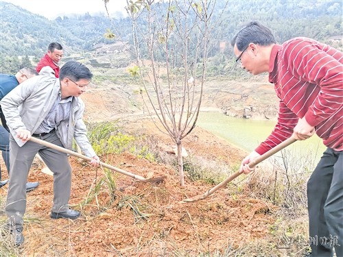 在潭江鎮溪西村植樹現場,“機關聯基層共建共管綠美豐順”主題黨日活動暨“綠美我家 美梅與共”愛綠植綠護綠行動如火如荼進行。(王銳 攝)