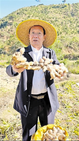五華縣電子商務協會黨支部書記宋偉東在田間地頭幫助農戶宣傳售賣生薑。(受訪者供圖)