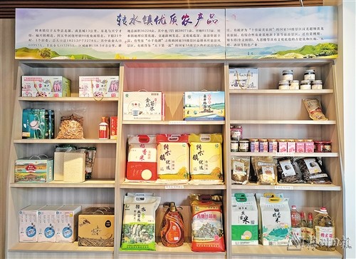 五華縣消費幫扶轉水館內,各種農特產品布滿展櫃。(賴鋒 攝)
