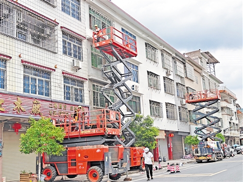 美麗示範主街打造如火如荼,雙華鎮房屋外立麵提升樣板工程同樣加快推進。“我們選取圩鎮橋頭至農貿市場沿線50棟連片農房為樣板區,進行集中改造提升,同時圩鎮入口至橋頭沿線‘赤膊房’改造同步實施。”雙華鎮相關負責人介紹說,目前,首批10棟房屋的改造正熱火朝天地進行中,“赤膊房”“老舊房”即將煥發新顏。