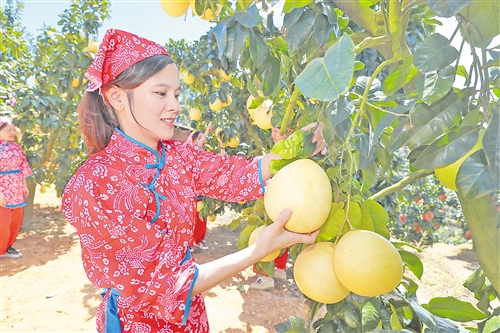 在築牢品質根基的同時,大埔縣以蜜柚為核心土特產,優化產業布局,激活農村“造血功能”。2019年以來,全縣在特色農產品培育發展中的投入,有67%集中在蜜柚產業相關配套項目,從冷鏈物流設施建設到深加工生產線引進,全方位提升產業配套能力。依托得天獨厚的自然條件,湖寮、茶陽、百侯、青溪、西河5個鎮成為蜜柚特色產業重點發展區域,形成規模化、集約化種植基地;湖寮鎮雙髻山村、青溪鎮溪口村等20個村憑借蜜柚種植形成特色產業村,構建起“鎮有特色產業、村有優勢產品”的發展格局。