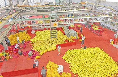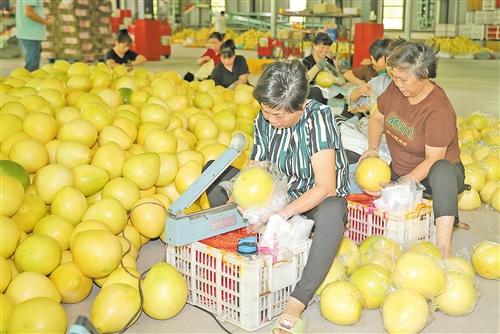 在梅州萬川千紅農業發展有限公司基地,大批蜜柚正在被分揀、打包。