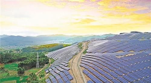 位於東石鎮尖山礦區的平遠利天光伏發電項目現場,一排排光伏板向陽而列,為村集體帶來穩定收益。(平遠縣全域辦供圖)