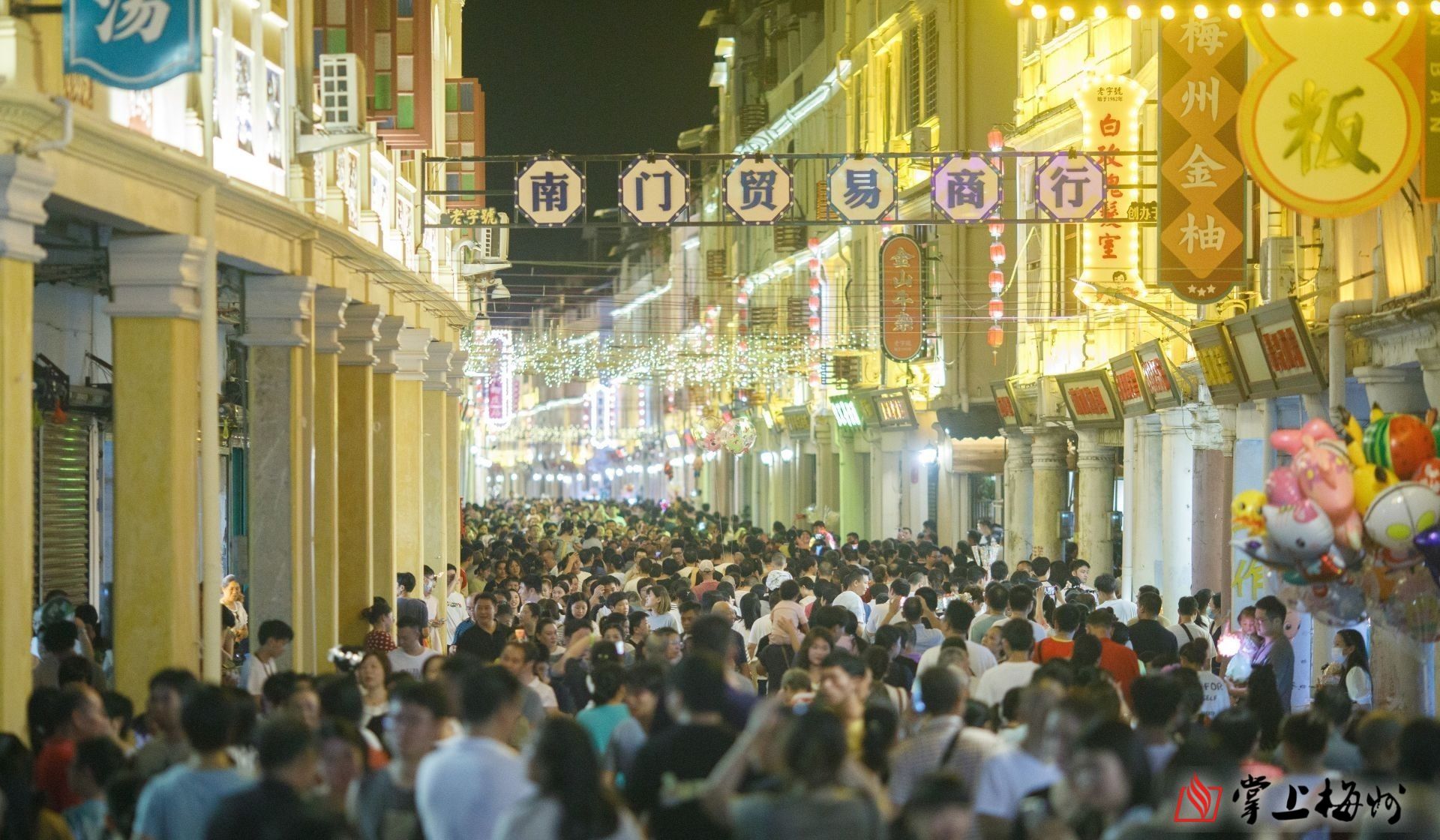 近段時間,嘉應古城成為梅州文旅最“出圈”的一張名片。今年3月,梅江區嘉應古城曆史文化街區保護提升項目正式進場施工,經過一段時間的修繕改造,9月15日嘉應古城以嶄新的麵貌亮相。國慶期間,嘉應古城“快閃”活動、客家非遺美食文化薈、嘉應古城美食尋寶打卡及主題光影秀活動,讓市民遊客在遊玩中感受客家文化魅力。大街小巷的鹽焗食品、客家娘酒、嘉應茶、客家小吃、客家傳統糕點等備受青睞,進一步激發了旅遊市場的消費活力。