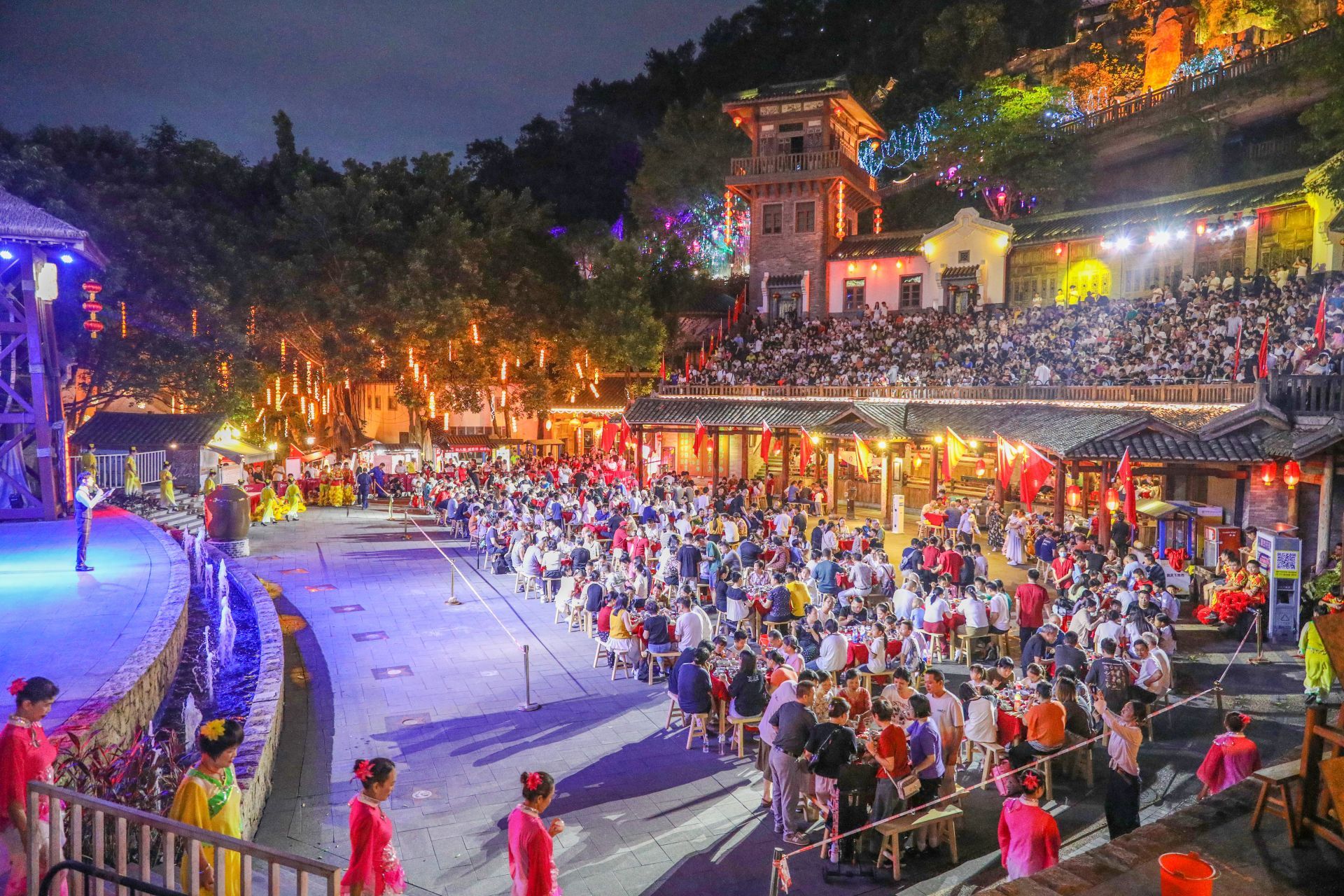 2024年梅州米香酒文化周期間,市縣兩級共舉辦各類活動159場。客家文藝節目表演、“客家山歌特出名”梅州歌會、客家山歌音樂劇場《喊山》……這些活動既充滿傳統韻味,又有創新活力,為遊客開啟一扇深入了解客家文化的窗口。國慶期間,非遺小劇場“客韻璀璨”在山歌劇場連演3天,場場爆滿。演出通過客家山歌(劇)、廣東漢劇、提線木偶、民俗歌舞等多種藝術形式,穿插客家山歌學唱等互動環節,展現梅州魅力四射的非遺技藝,讓市民遊客一次性看過癮。“享受這樣一場視覺與聽覺的雙重盛宴,感覺節日的夜晚也愈發精彩有活力了。”來自東莞的遊客賴女士說。