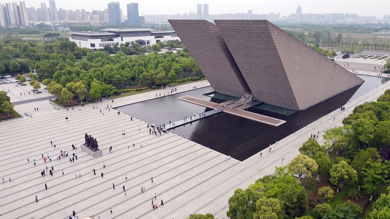 遊客在合肥渡江戰役紀念館參觀遊覽(2021年5月3日,無人機照片)。新華社記者 周牧 攝