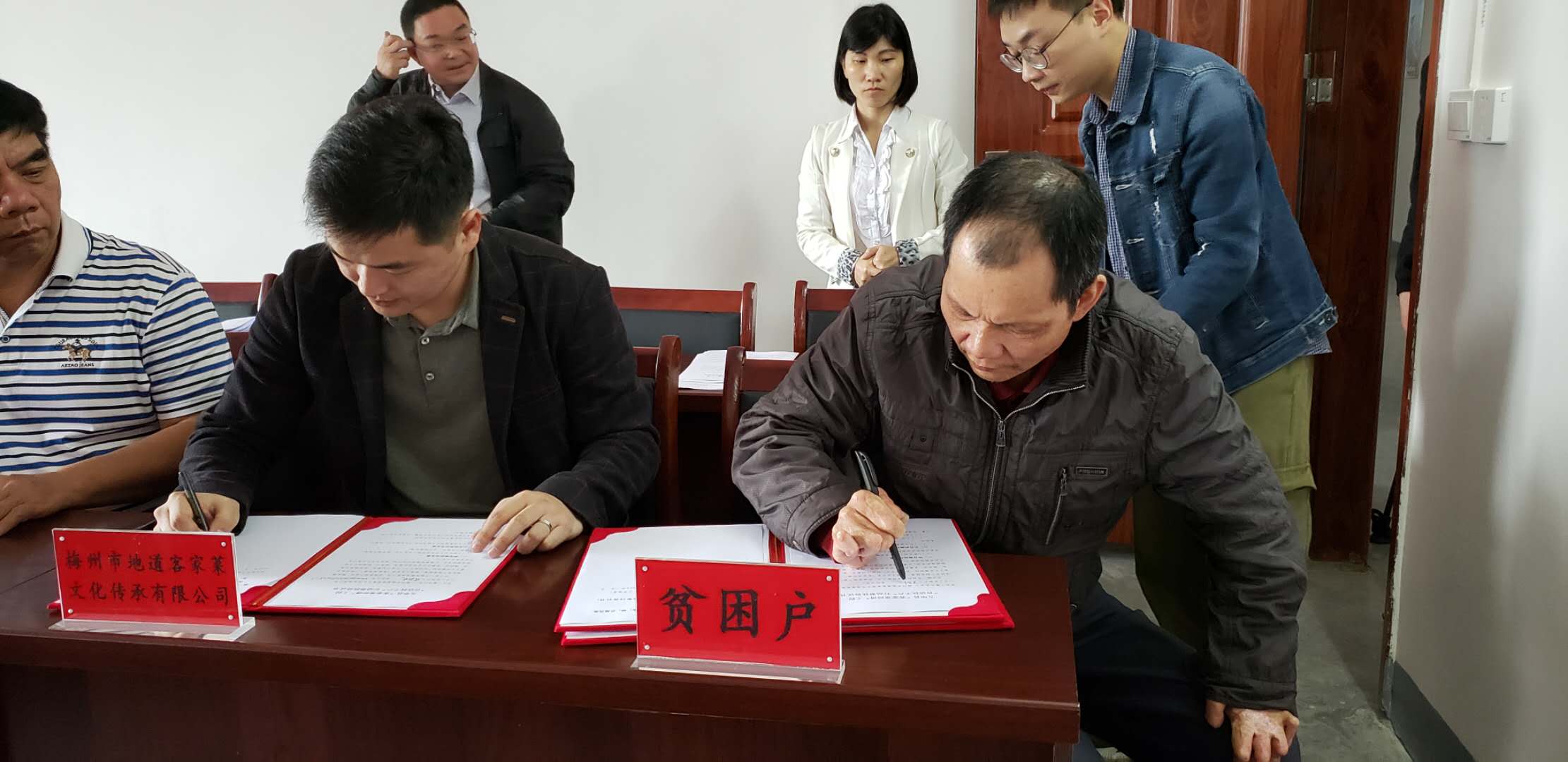 5月7日上午“粵菜(客家菜)師傅”工程“百店扶千戶”示範點幫扶活動簽約儀式,來自五華縣河東鎮沙渴村29戶貧困戶與梅州市地道客家菜文化傳承有限公司簽訂了農產品采購幫扶、長期工幫扶、臨時工幫扶、培訓幫扶、推薦就業幫扶等幫扶協議。
