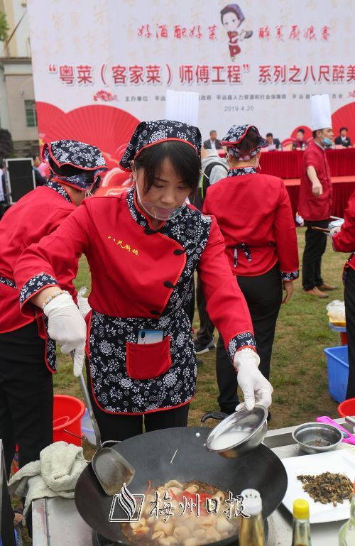 “梅州釀製客家娘酒的曆史悠久,八尺鎮更是廣東省酒業技術創新專業鎮。粵東家喻戶曉的‘酒鄉’,還是在客家飲食文化中,酒在食材配料或餐桌禮俗中一直扮演著重要角色。八尺娘酒是客家娘酒中的佼佼者,其色濃厚,味道香醇。”比賽評委之一、平遠羅八餐館主廚、十大南粵廚王羅誌傑介紹說,“以娘酒入菜是這次比賽的一大亮點,參賽的廚娘們除了傳統的娘酒雞,還創新性地在焗雞、扣肉中以酒入料,將酒的醇香烹入其中,創意無窮。同時各代表隊烹飪的流程和操作合理,菜品的搭配科學健康。”