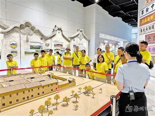 第22屆梅台青年夏令營營員參觀梅州城市展覽館。(圖片來源:梅州日報 何梓瑜 攝)