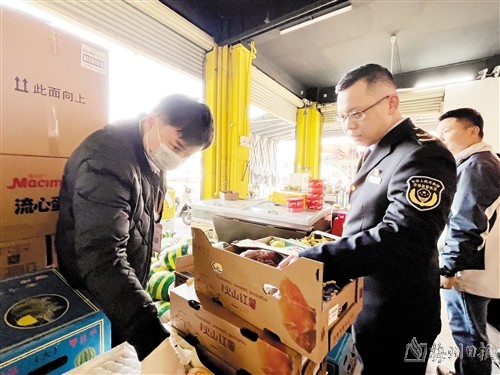 市市場監管局到海吉星農產品批發市場進行食品抽檢。(何梓瑜 攝)
