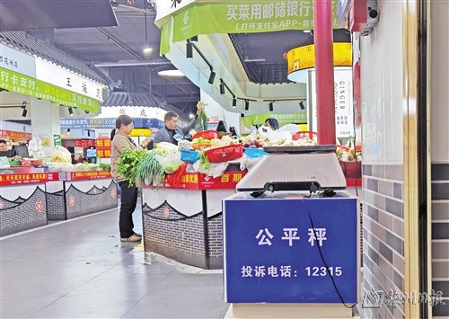 梅城百花洲市場增設公平秤,切實維護市場公平交易和消費者的合法權益。(李盛華 攝)