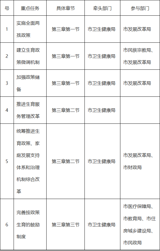 ——深化改革創新。積極轉變人口調控與人口服務管理的理念和方法,統籌推進生育政策、衛生健康服務管理製度、家庭發展支持體係和治理機製綜合改革。完善人口預測預警機製,建立健全重大決策人口影響評估製度。