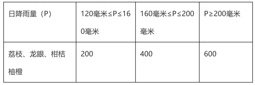 4、幹旱是指在正常的農業生產水平條件下,較長時段內因降水量比常年平均值特別偏少,影響保險標的荔枝、龍眼、柑桔柚橙果樹的正常生長發育和果實成長造成損害的一種農業氣象災害。尤其在果實生長發育階段是需水關鍵期,幹旱往往給果實的發育帶來嚴重損害。