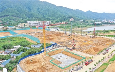 蕉嶺始終把招商引資作為經濟工作的生命線和產業發展的主抓手。圖為在蕉華產業轉移工業園通用標準廠房二期建設及配套基礎設施項目施工現場。(圖片來源:梅州日報 吳騰江 攝)