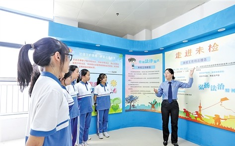 在法治進校園宣傳活動中,檢察幹警向學生普及相關法律知識。(圖片來源:梅州日報 吳麗伶 攝)