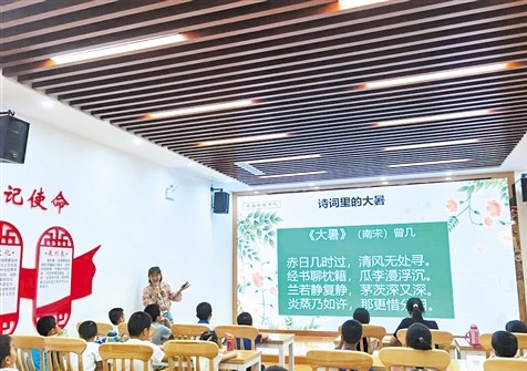 活動現場,老師給孩子們講授大暑的習俗和文化。(圖片來源:梅縣區圖書館供圖)