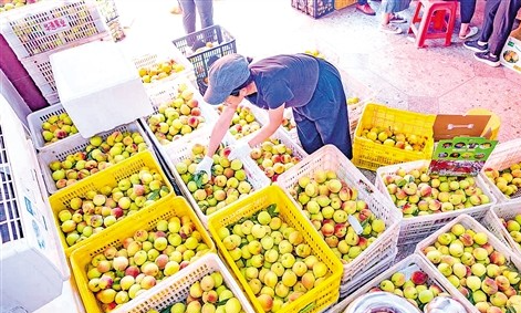 產業興,富鄉民。“我在這邊工作近10年了。平時一個月收入有三四千元,旺季的時候甚至有五六千元,在家門口就有活幹。”村民黃秀芬麻利地篩選好標準果、大果,笑著告訴記者,村裏有20多名村民在基地務工,隨著鷹嘴桃產業的發展,附近鐵坑村、豪嶺村等地也有不少村民跟著種起了鷹嘴桃,輻射帶動近150畝。