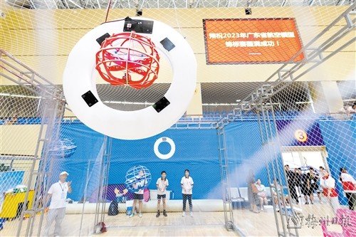 省航模錦標賽多軸無人機“足球”項目比賽現場。(圖片來源:梅州日報 連誌城 攝)