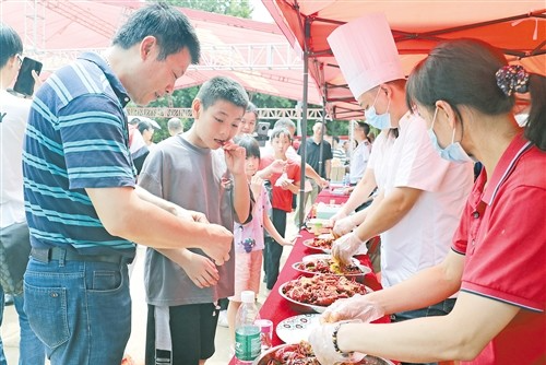 參與活動的市民和遊客在現場品嚐美味的小龍蝦。(高訊 攝 圖片來源:梅州日報)