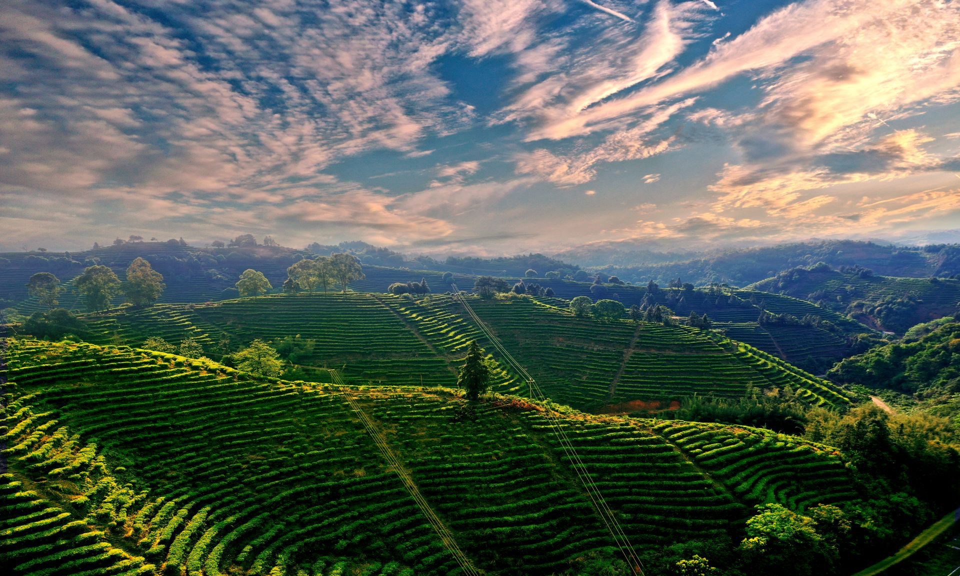 驅車進入興寧市合水鎮鐵山茶場,沿著蜿蜒的盤山道路前行,可見茶山依地形層層遞高,如同層層起伏的綠波,一壟壟茶樹長勢喜人。