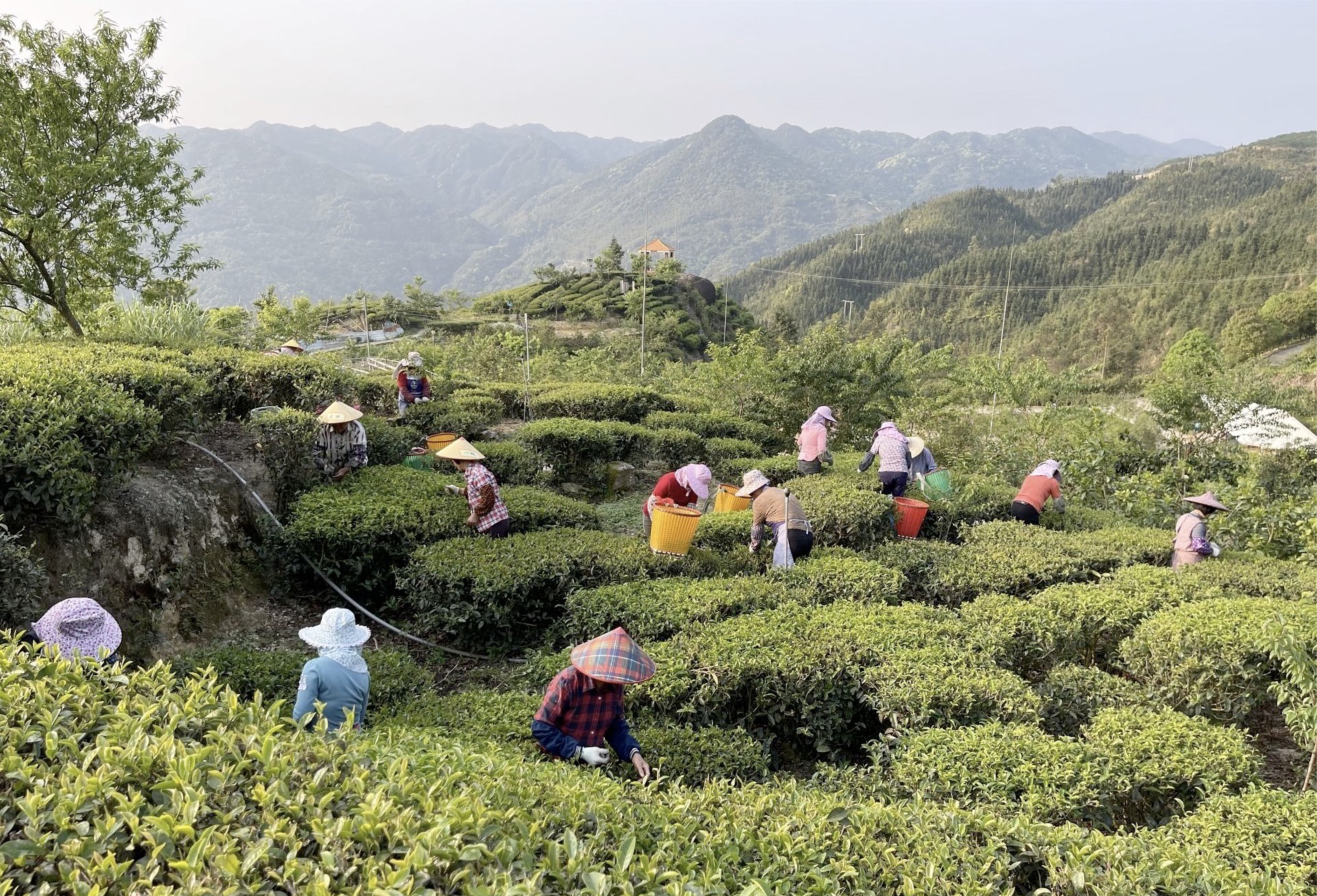 嘉洪農林公司的茶園內,工人們在采摘茶葉。(嘉洪農林公司供圖)