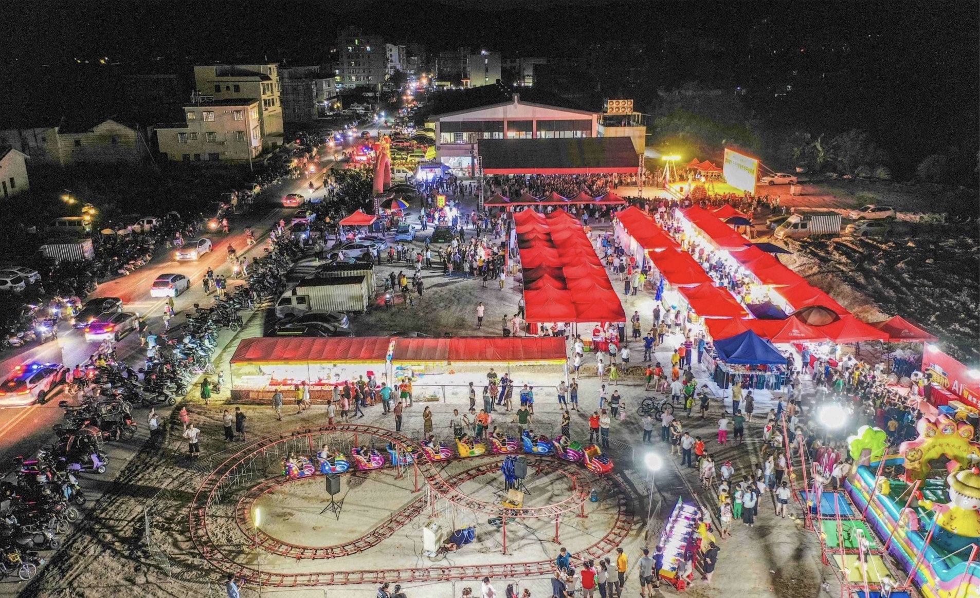 夜幕降臨,圩日活動現場人山人海,熱鬧非凡。