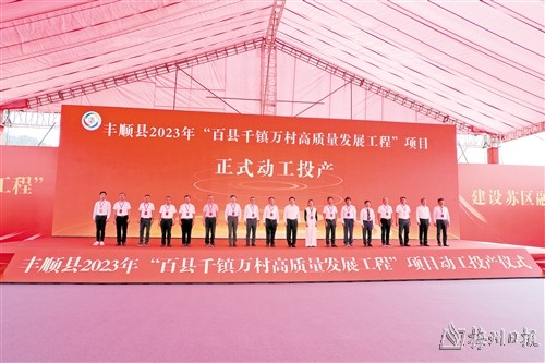 豐順縣舉行“百千萬工程”項目動工投產儀式。(圖片來源:梅州日報 劉桁穀 攝)