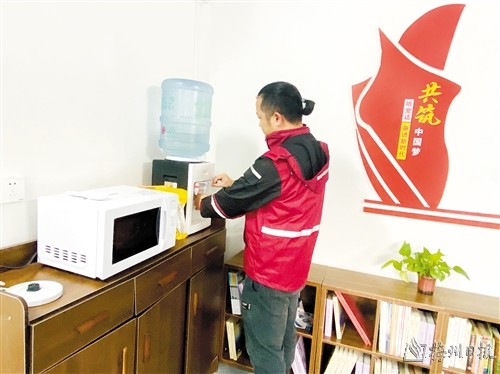 藍智暉是大埔圓通快遞公司的一名快遞員,和同事們每天起早貪黑、風雨無阻,穿梭於城市的大街小巷派送包裹。“有時為了趕時間,飯也顧不上吃,累了就趴在車上休息一下。有了暖蜂驛站後,我們快遞員有了落腳點,可以來這裏熱個飯,特別是中午的時候可以來休息一下,貼心的服務讓我們很暖心。”藍智暉說。