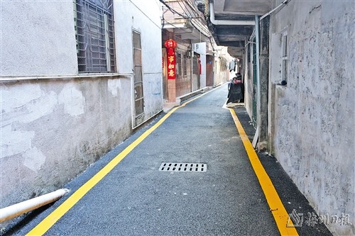 新沙三巷重新鋪設了柏油路麵。(圖片來源:梅州日報 張瑩娜 攝)