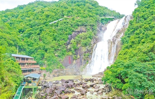 “粵東第一瀑”龍歸寨瀑布氣勢磅礴,頗為壯觀。