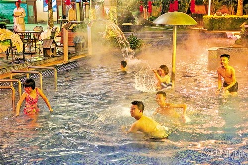 遊客在金德寶溫泉酒店的溫泉池內玩耍。