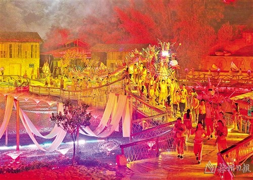 大寶山生態旅遊養生度假區舉行“火龍劇場”表演。